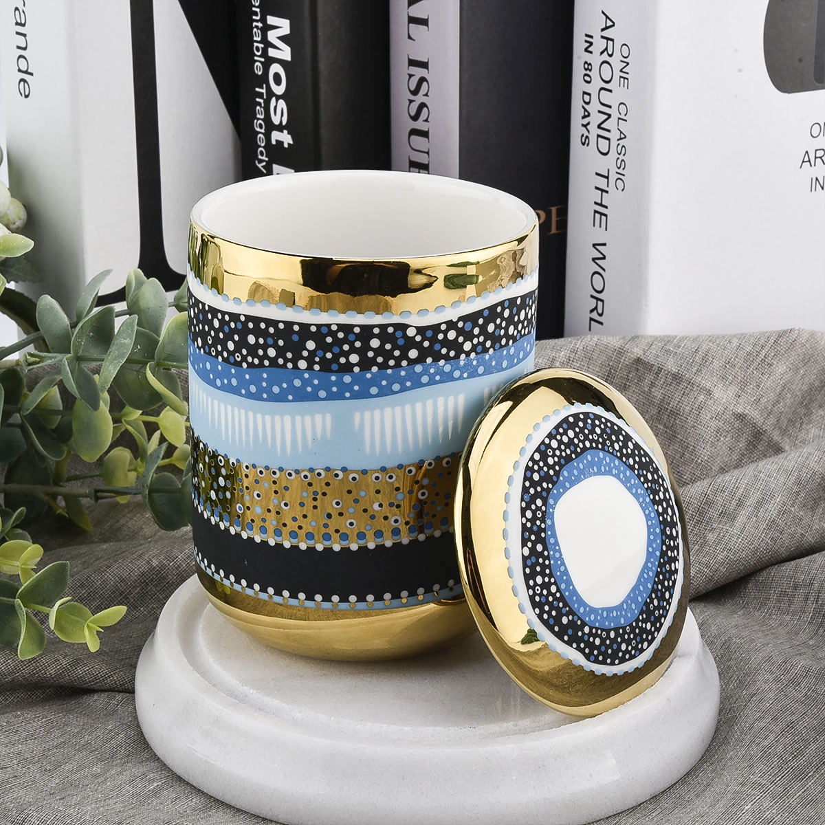 Luxury Unique Ceramic Candle Jar With Lids Gold Ceramic Candle Vessel With Lid for Candle Making |