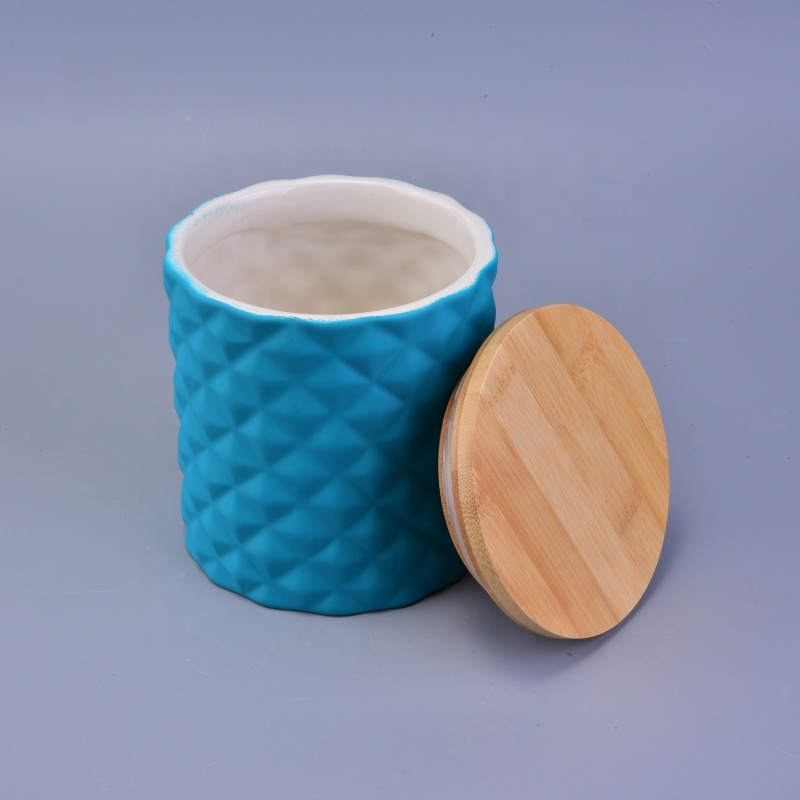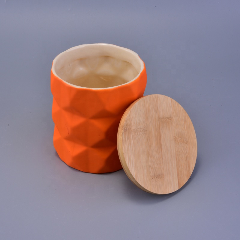 high quality modern ceramic candle holder with wood lids wholesale